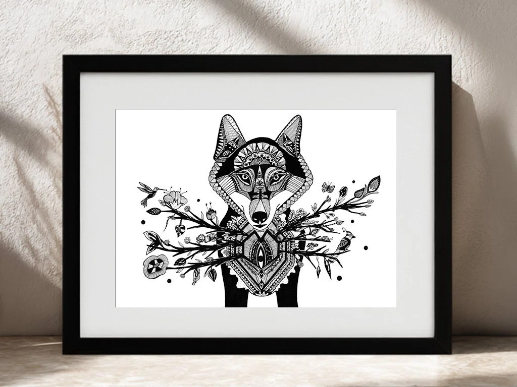 Each commission begins with a conversation — about the animal you'd like drawn and what it means to you. From there, I work slowly and intuitively, building the piece through line, symbolic detail, and close observation. Every commission is a unique original, drawn by hand in black ink on paper.